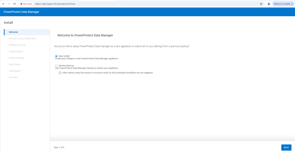 For the restore type we will ‘Restore to a New Namespace’, giving it the name of ‘ppdm-restored’.