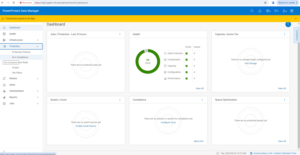 We won’t run through how to do the initial standup of PPDM and DDVE as I have covered this in other blogs. Link is here. We will start with a clean build, with DDVE already presented to PPDM as the backup storage repository.