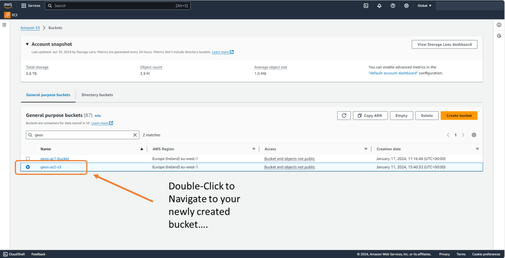 As with everything in AWS, you need to be authenticated and authorised to undertake pretty much everything. So if you aren’t the root user, make sure whoever has set you up as an IAM user has granted you enough permissions to undertake the task at hand. You can check your user identity on Cloudshell via the following command: